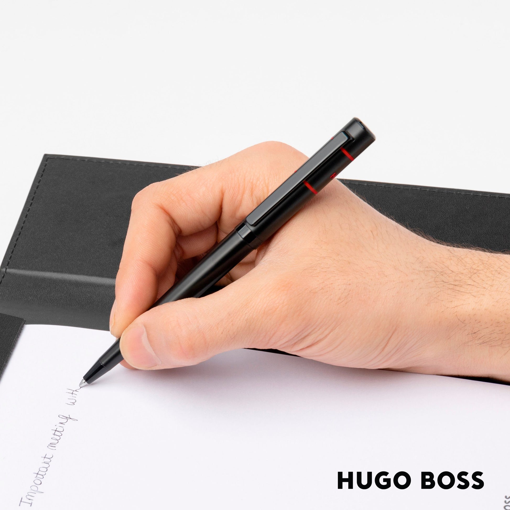 The Ribbon Matrix Red pen is a combination of the Ribbon & Gear Matrix lines from HUGO BOSS. It is a simple yet striking pen with a black finish and fine yellow lines that give it a modern and youthful feel. Delivered in a beautiful box of the brand.