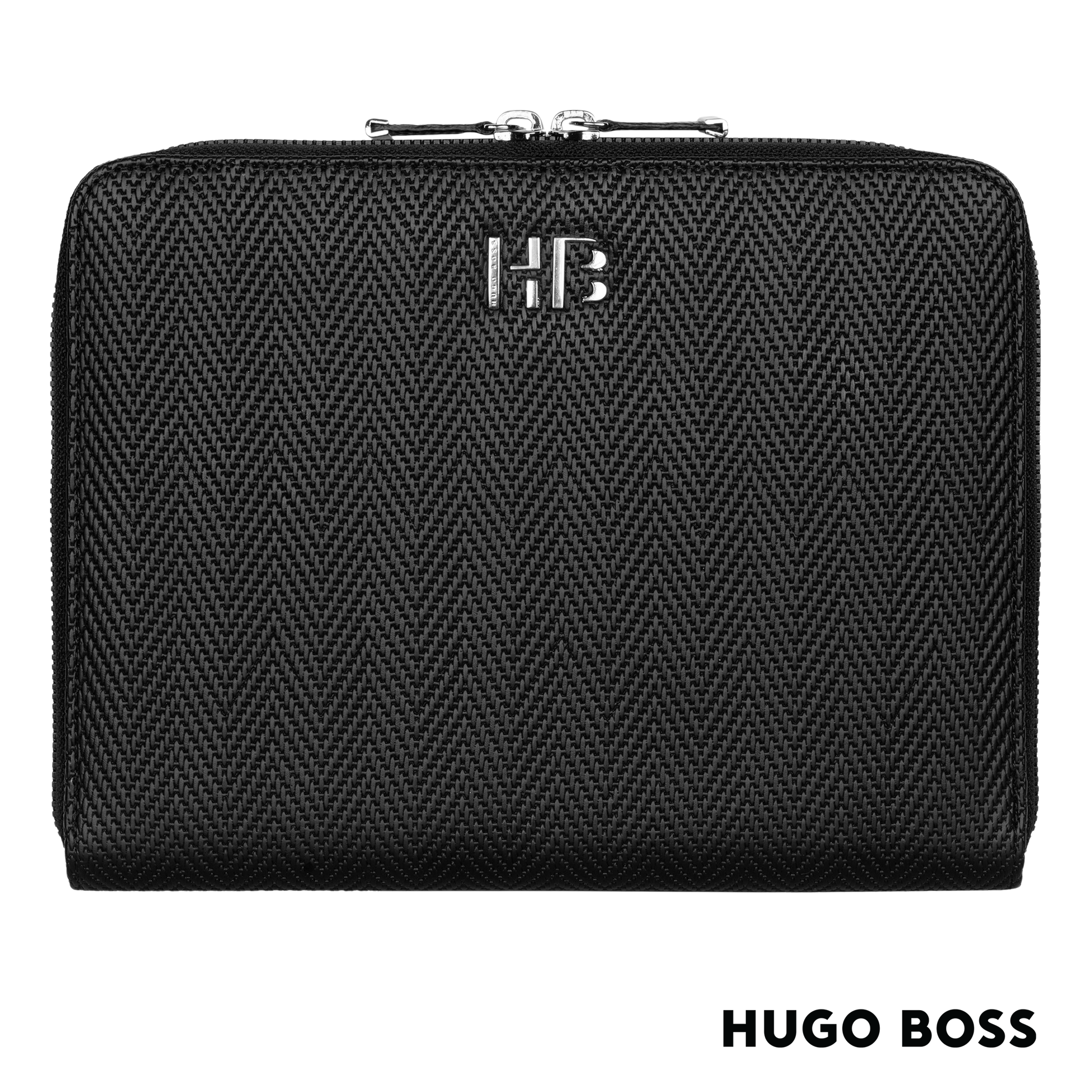 Finely crafted with a refined herringbone pattern reminiscent of the fashion house suiting, the Herringbone A5 folder with its distinctive Hugo Boss crisp chrome metal plate is timeless and elegant.