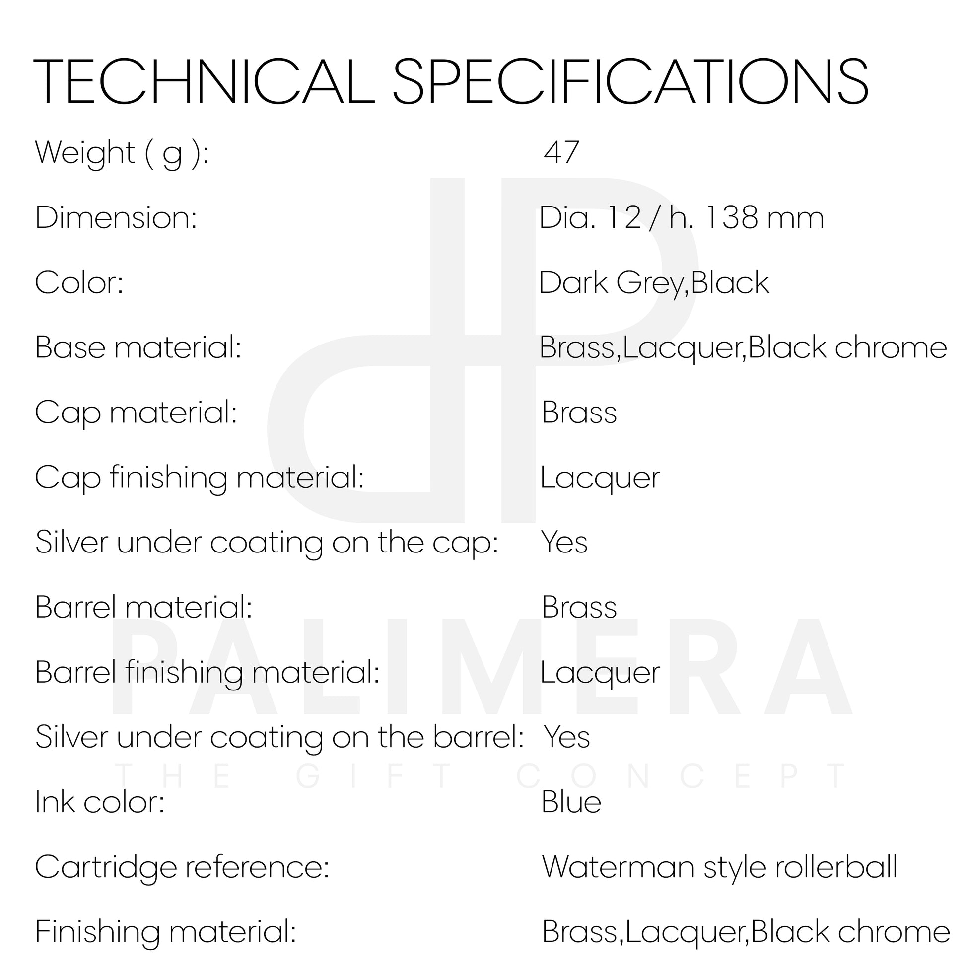 The Icon line exudes timeless elegance. Its classic shape and soft frame is declined in exclusive dark grey tones. With refined details and understated brilliance, the item is made almost monochromatic by its dark chrome trims, completing a sophisticated take on a minimalist look. The item is available in fountain, roller and ballpoint pen.